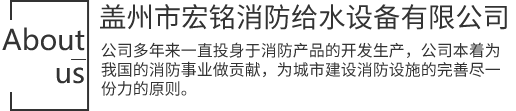 蓋州市宏銘消防給水設備有限公司坐落于風景秀麗、氣候宜人、交通便利的遼寧省蓋州市境內,這里交通網絡四通八達,哈大鐵路、哈大公路、沈大高速公路近在咫尺,營口港、鲅魚圈港與公司相鄰。